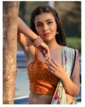 Riddhima has smiled a cute smile.